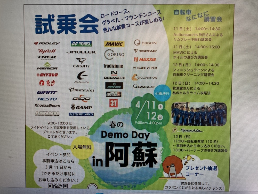 リンク(サイクルスポーツWEBより)→ 「春のDemo day in 阿蘇」