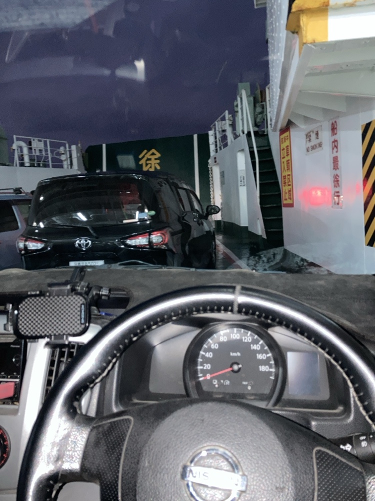 早朝3時に起床しまして、お客様方と合流、日産NV200号に乗り合わせで垂水フェリーに乗り込みました。お二方のお客様は、本日自走にて参加、4時半が始発となる桜島フェリーで先行、会場に向かって走ってらっしゃいます!