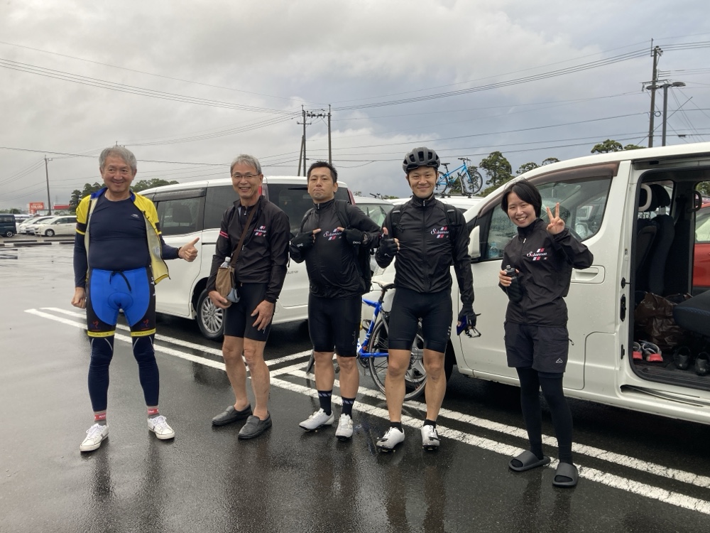 鹿児島市の自宅から自走で来て100km走られたお客様のグループも、先頭から50分ほどの経過後、無事に戻ってこられました。この後また、自走で帰られて、総走行距離180Kmとのことで、ただただ頭が下がります。
