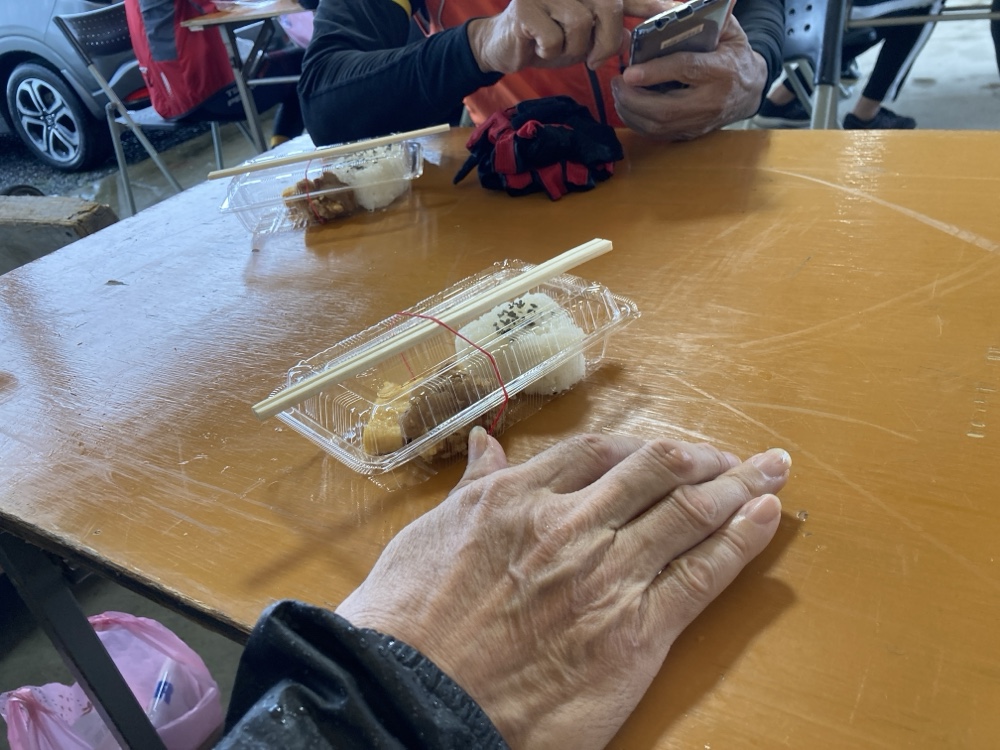 第2エイドのメニュー、黒砂糖のふくれがし。もはや昼食後のデザートです。