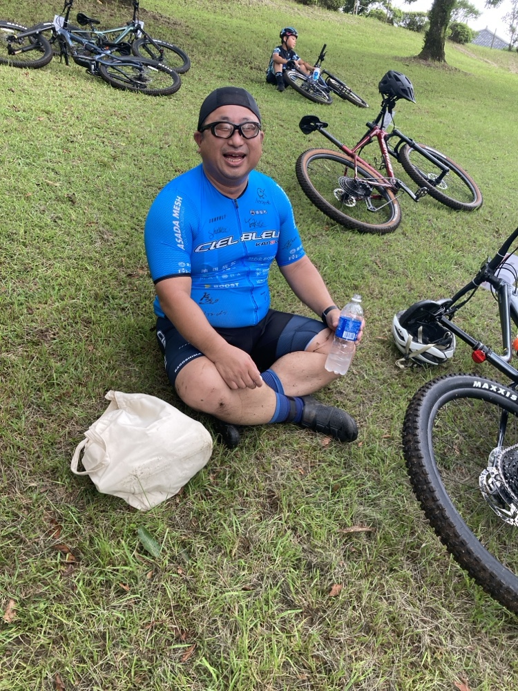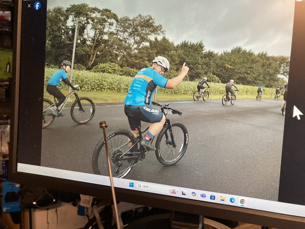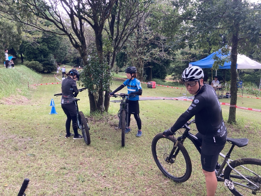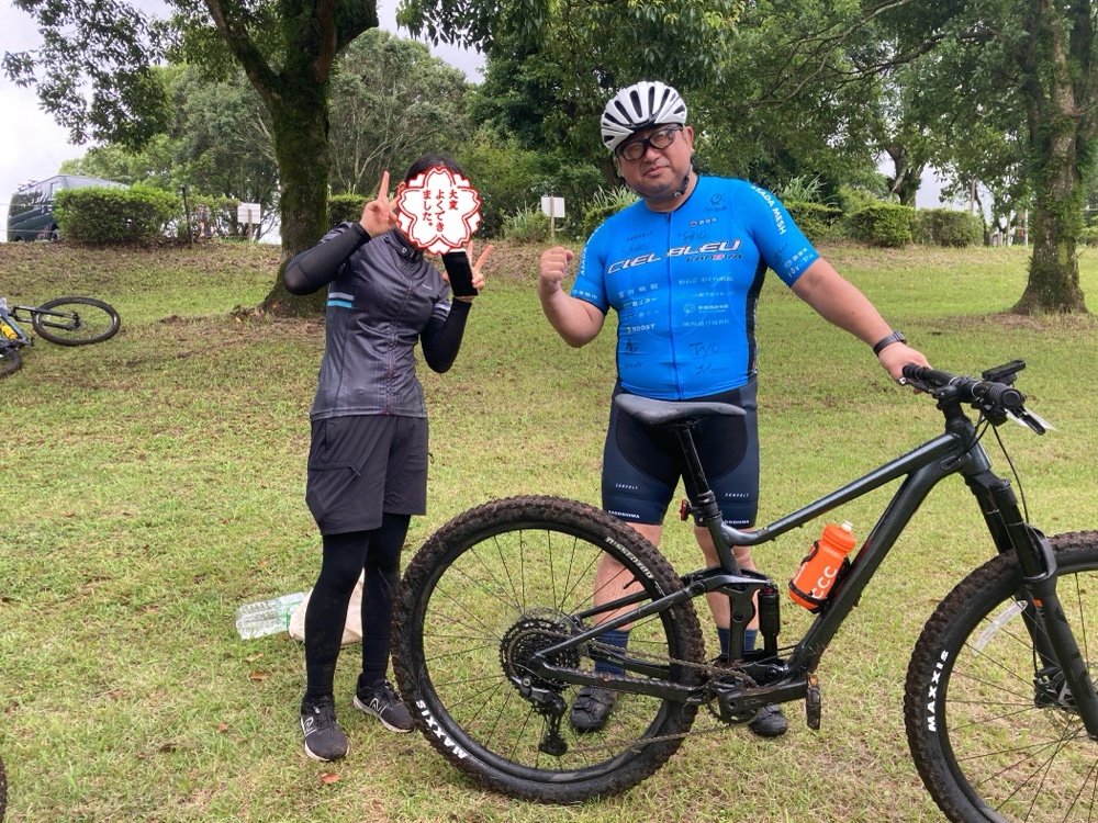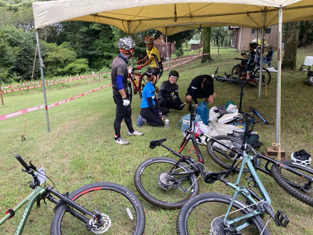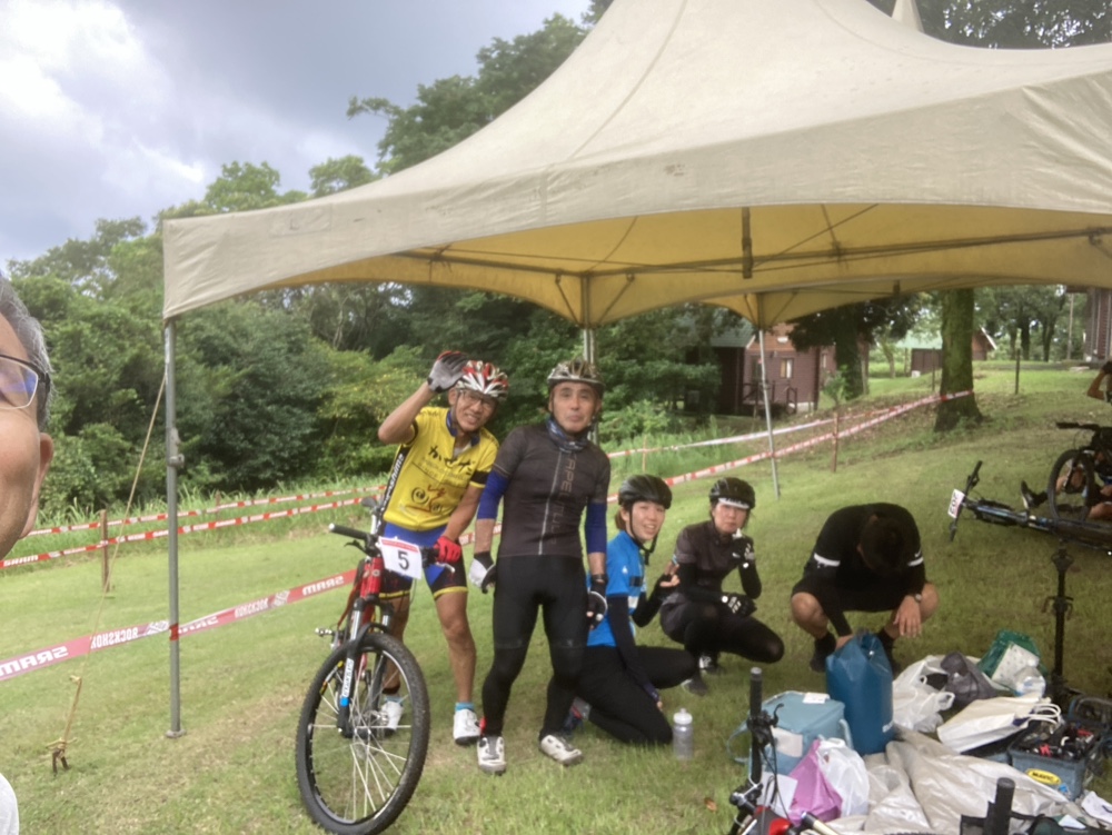 今回、本格MTBの新車をご購入して、初めてのマウンテンバイクレースにチャレンジされるシエルブルージャージの選手も一緒にお写真。。。テント内が一段と賑やかになりました♪