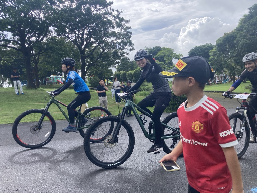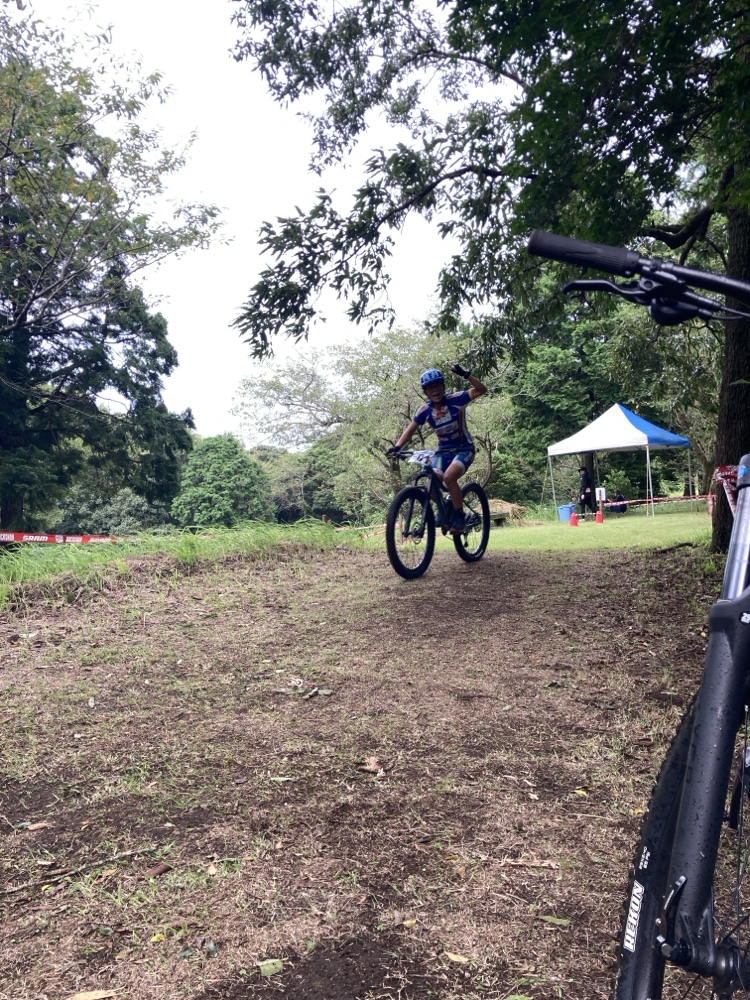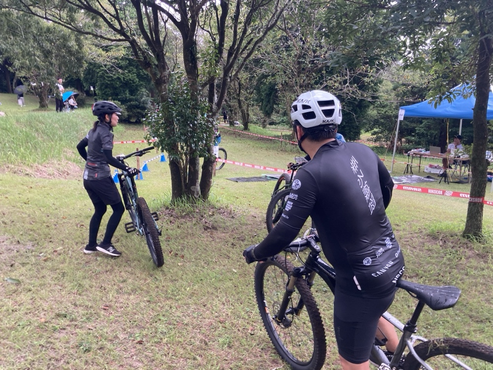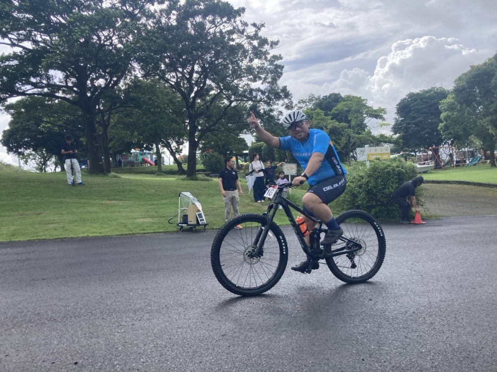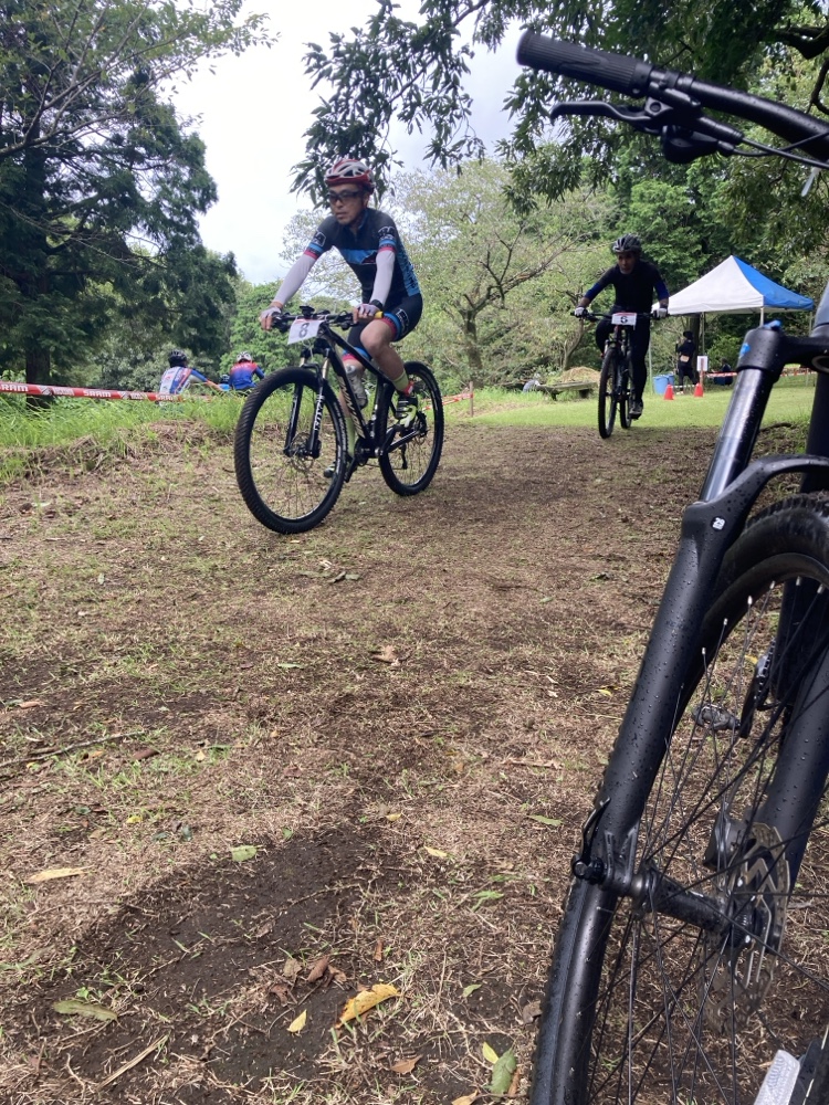 今回の大会も、霧島ヶ丘公園の常設コースに加えて、2~30mほどの落差の斜面に特設されたシングルトラックがコースとなっており、全長1.5kmと、とても走りごたえのある楽しいコースでした。2時間耐久の終了間際、やや強めに降った雨のせいで一部マッドコンディションになりましたが、基本的には水はけが良くて大変良好なコースだと思います。