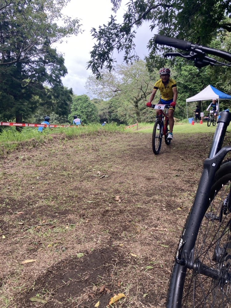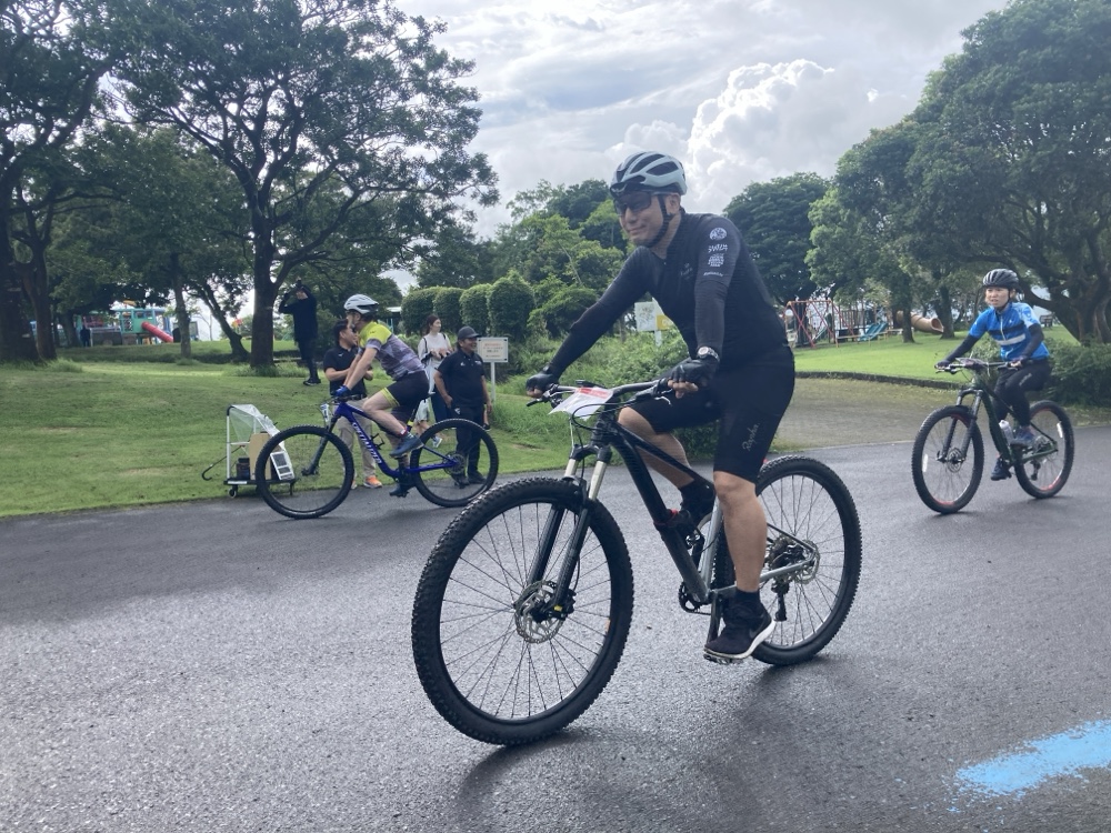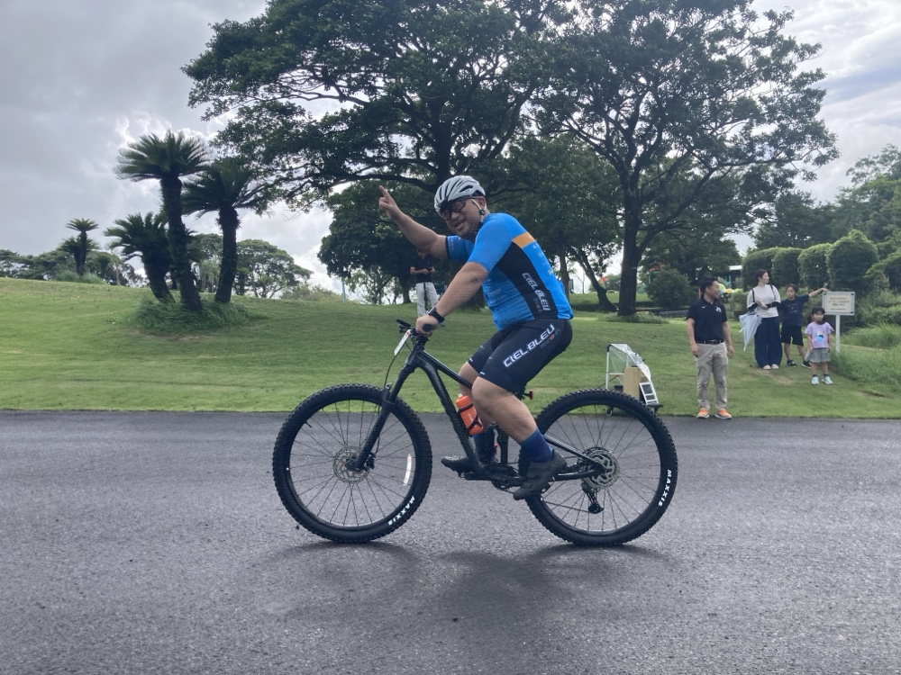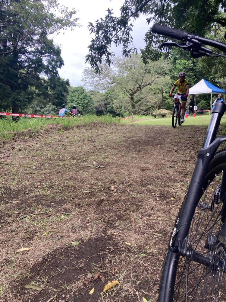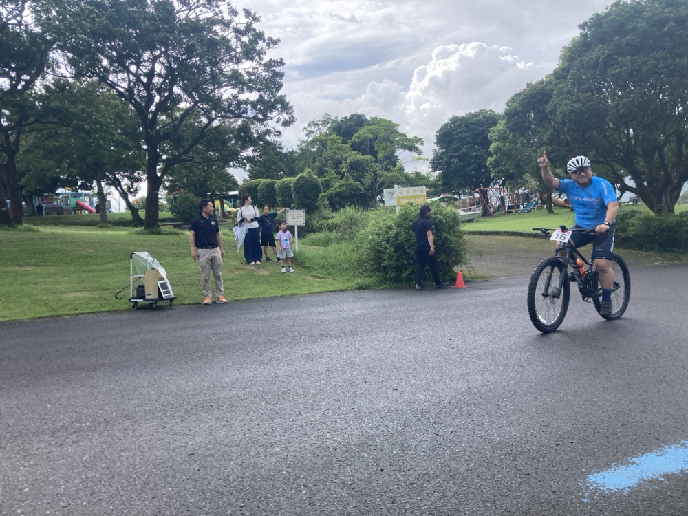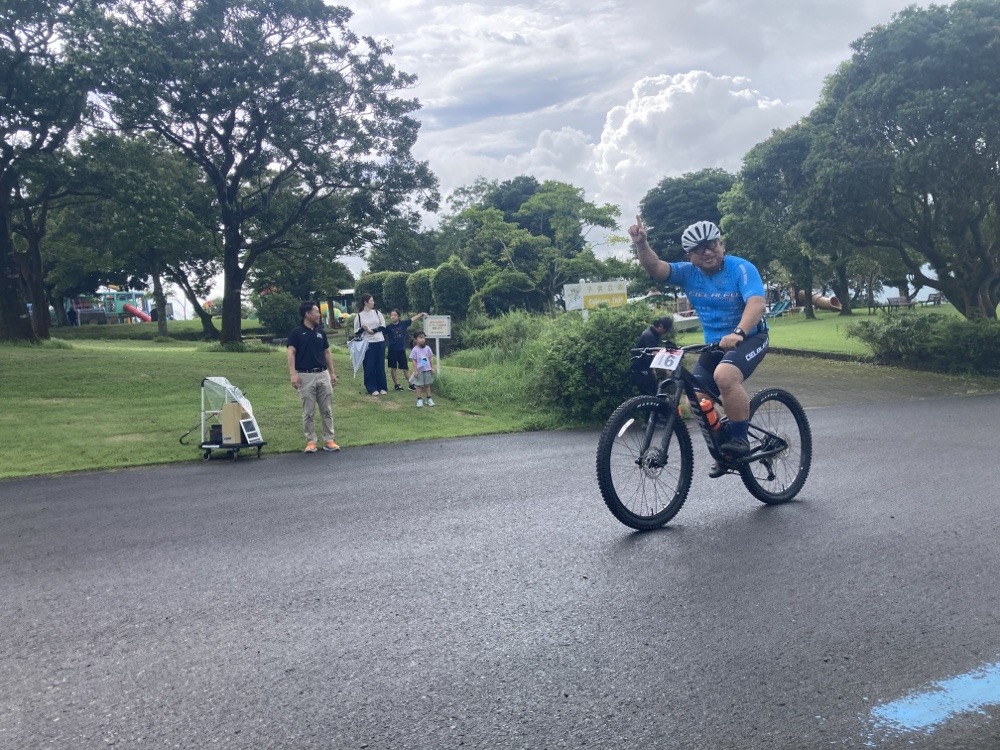 今回の大会も、霧島ヶ丘公園の常設コースに加えて、2~30mほどの落差の斜面に特設されたシングルトラックがコースとなっており、全長1.5kmと、とても走りごたえのある楽しいコースでした。2時間耐久の終了間際、やや強めに降った雨のせいで一部マッドコンディションになりましたが、基本的には水はけが良くて大変良好なコースだと思います。
