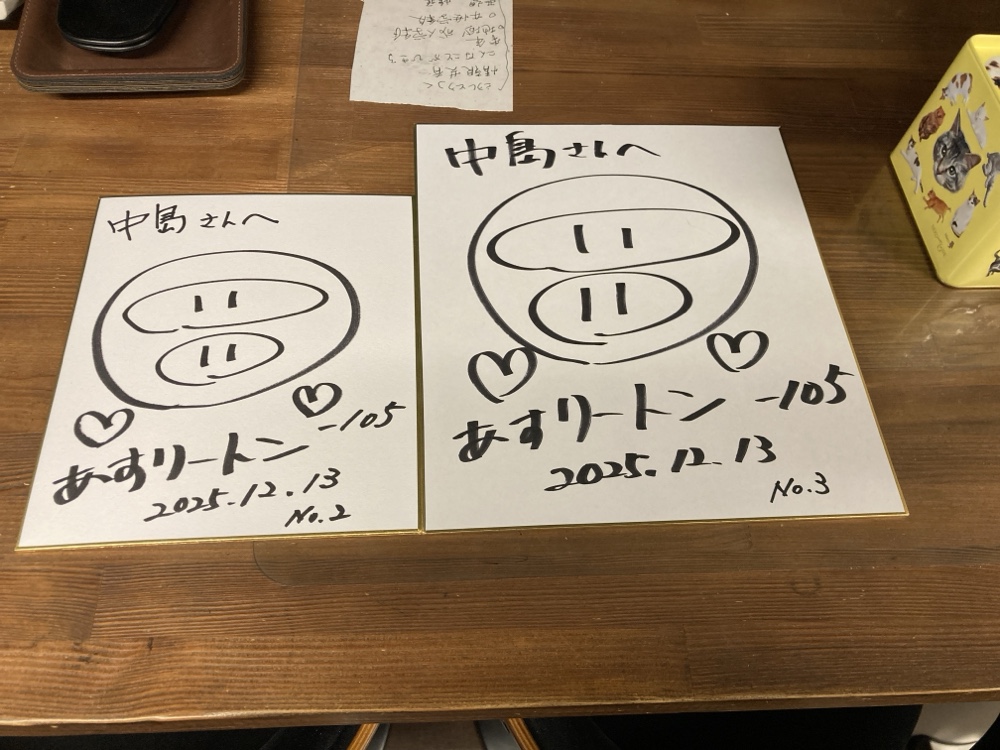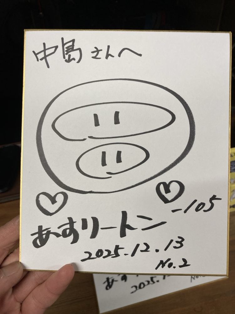 お仕事で広報活動もしてらっしゃるらしい、「あすりートンさん」、ご自身のサインもお持ちだとのことで、まっさらの色紙にオリジナルサインをいただきました。