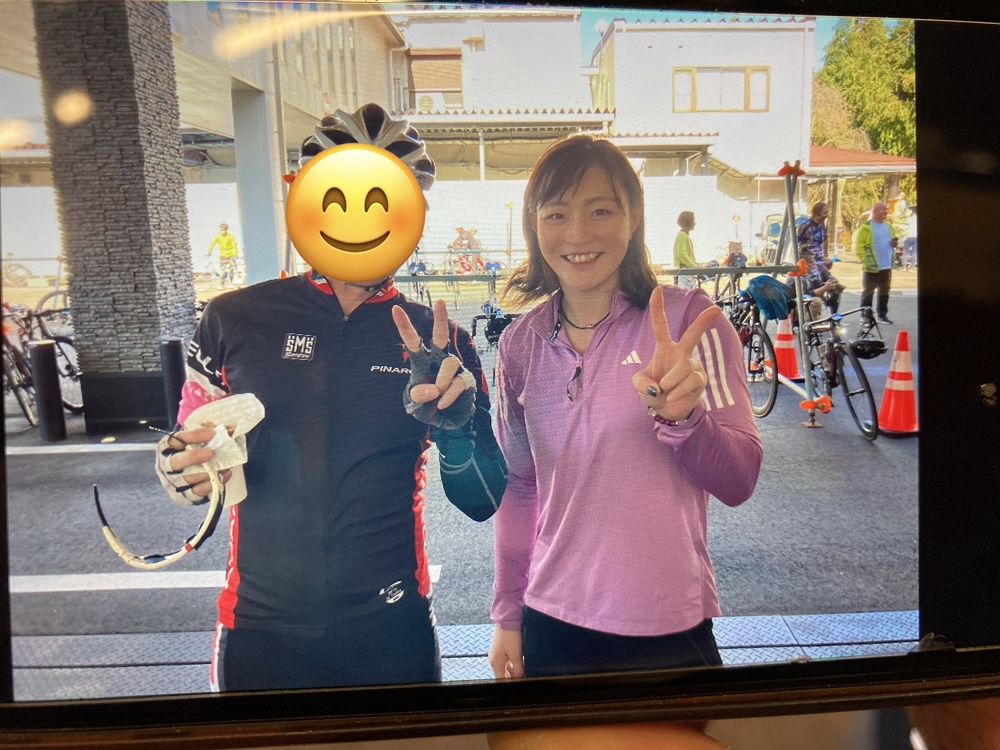 やっぱり、鶴田ダムへのヒルクライムをされたのかな?Aコースの途中では暑かったみたいで、ジャージを外してらっしゃって、ほんのり汗をかいてらっしゃった様子だったとの事でした。
