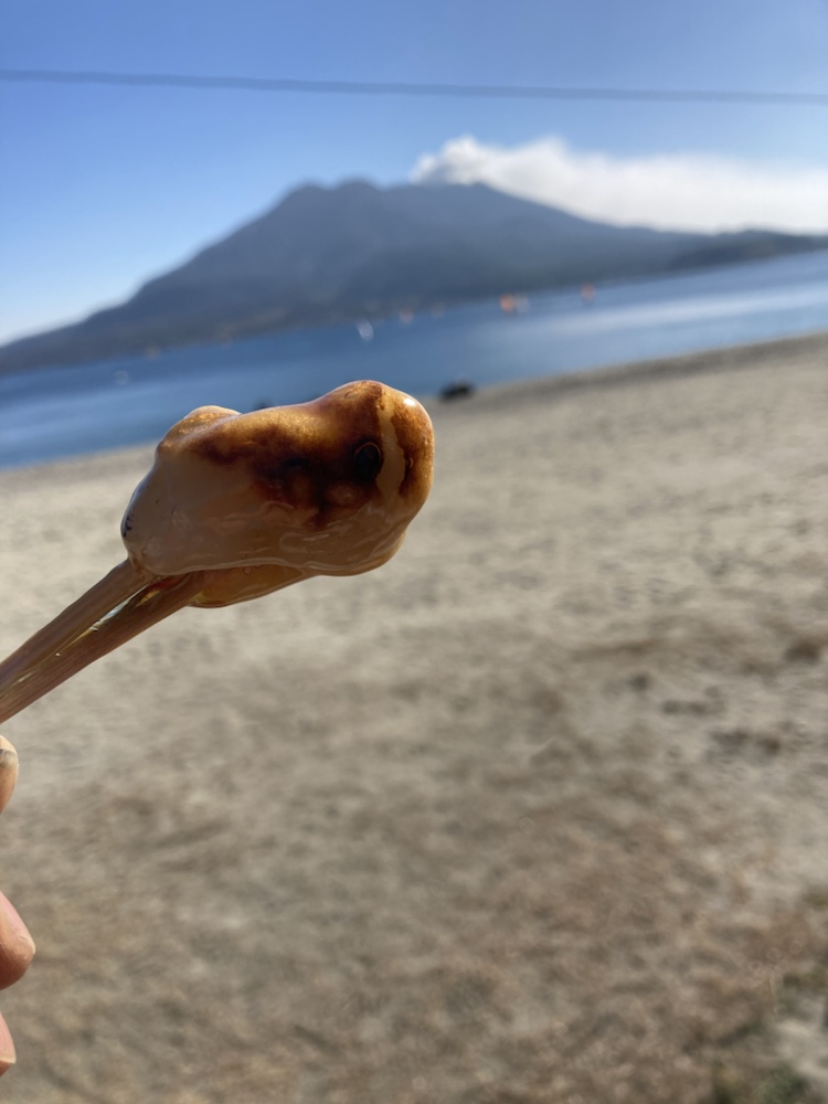 食べに行くのは「どデカいジャンボ」な、ではなく、漢字からの意味合いは「両棒」→「リャン ボウ」「ジャン ボウ」な お餅で、磯の別邸を造った薩摩のお殿様も食べてたであろう、甘ジョッパイタレのかかった柔らかいお餅です。2本の棒が刺してあります。中島の好物です。