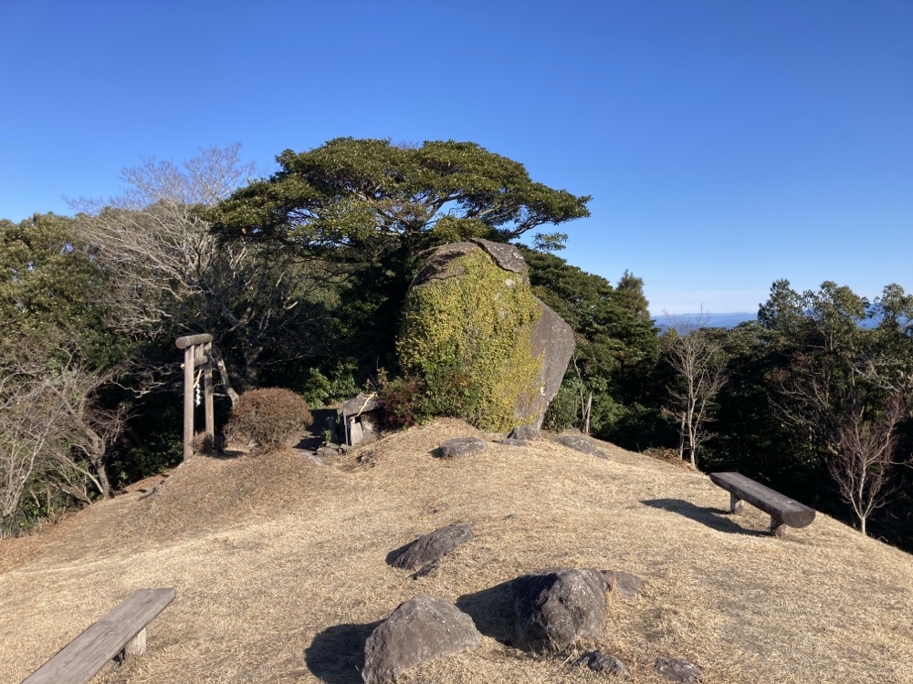 で、こちら山頂です。標高500mオーバー。吉野・姶良本面では最高峰ながら、下見で「初日の出」参拝にはむかないと分かっていたので(東方向の見通しが悪い)、初日の出を見た後で登ってきました。ひと気が無いですね。地元の方も「寺山展望所」や「吉野公園」に行くのかな。