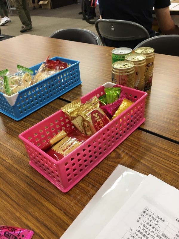 展示会会場の休憩所に例年置いてある、不二家のルックチョコレートが見当たらない、、、