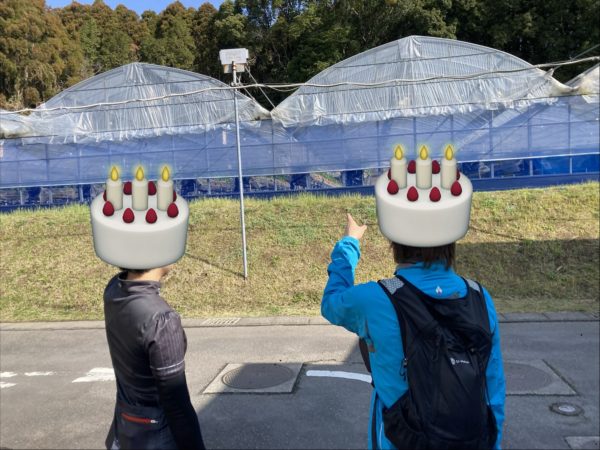 とうとう春がやってきました。でも先週の宮崎児湯グルメライドの時よりは少し肌寒かったですね。そんな3月1日の日曜日、吉野の古民家にお集まりいただいたお客様方と、伊集院町の「チェスト館」までイチゴ狩りサイクリングに出かけました。