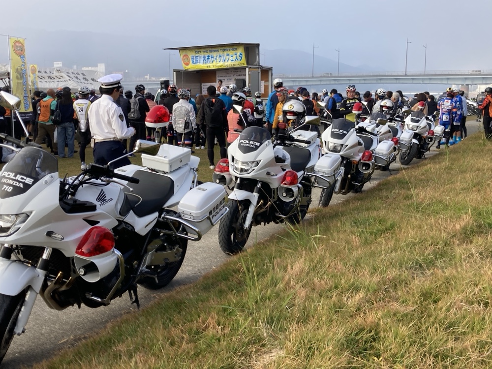 第三回目を迎える今大会は、川内川沿い堤防の上を走る素敵なサイクリングロードをベースに、「川薩グリーンロード」や「鶴田ダム」へ向かうヒルクライムルートを走るAコース100km、風光明媚な川内路を周遊して「藤川天神」へ向かうBコース46km、天神様参拝のCコース33kmの3ルート設定で、約300人の参加者がサイクリングを楽しみました。