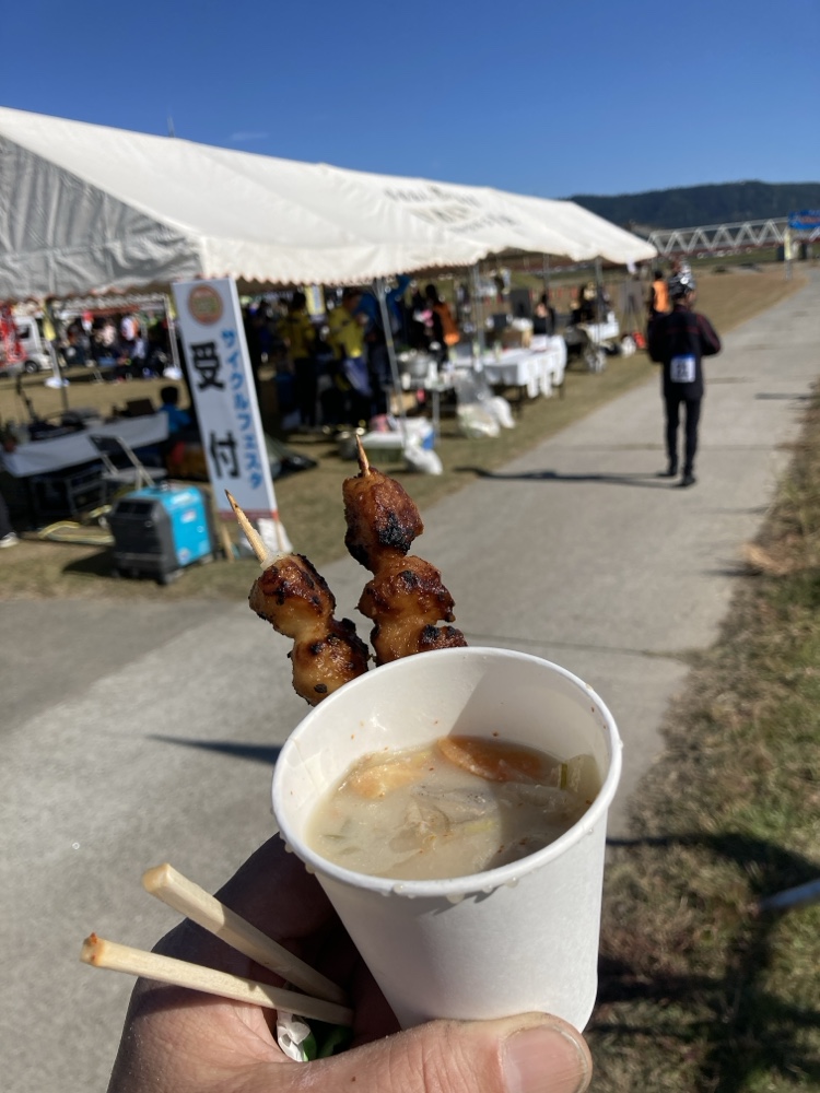 ゴールしました!Bコースのゴール時間、12時半くらいだったのかな。中島は最後尾あたりでしたけど。ゴール後の豚汁、しんこ団子、美味しかったです。おかわりしました。