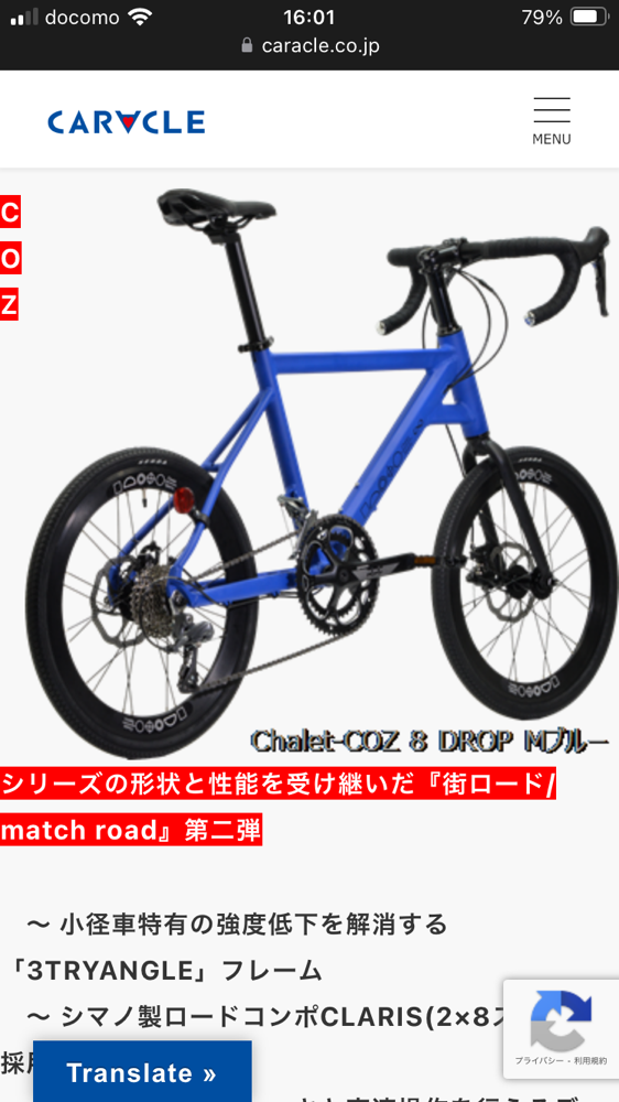 小径車の弱点をカバ=する3トライアングルフレーム、軽量デザインホイール、DISCブレーキなど、トレンドを抑えながら、クラリス16速ドロップハンドル仕様で10.8Kgと申し分のない仕上がりです。