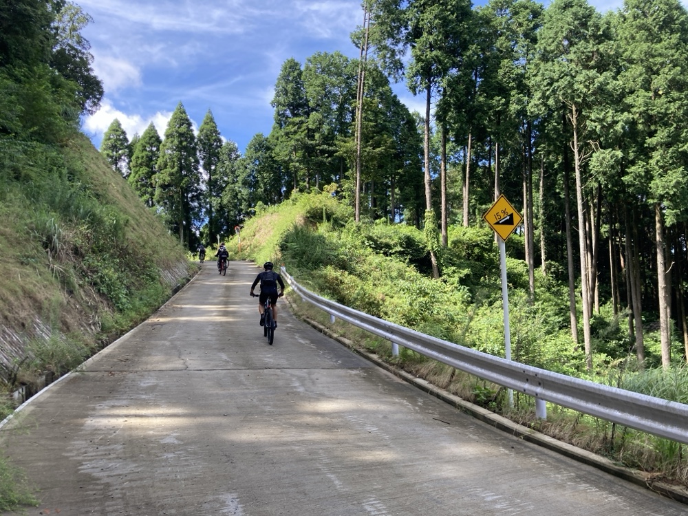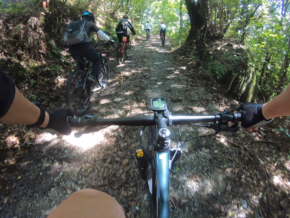 とはいえ、まだまだ暑いので、日曜のサイクリングは山の上の方へ、マウンテンバイクでサイクリングでした。今回はお客様が見つけられた新コースで、道の雰囲気は素晴らしくて楽しいMTBサイクリングでした。