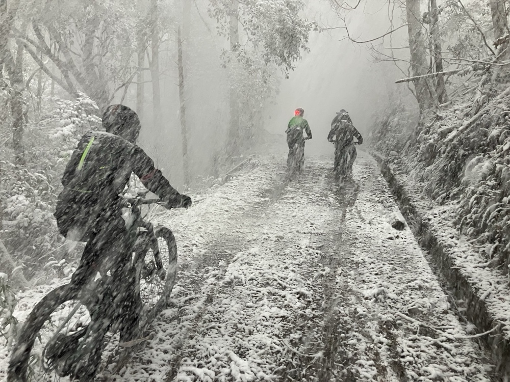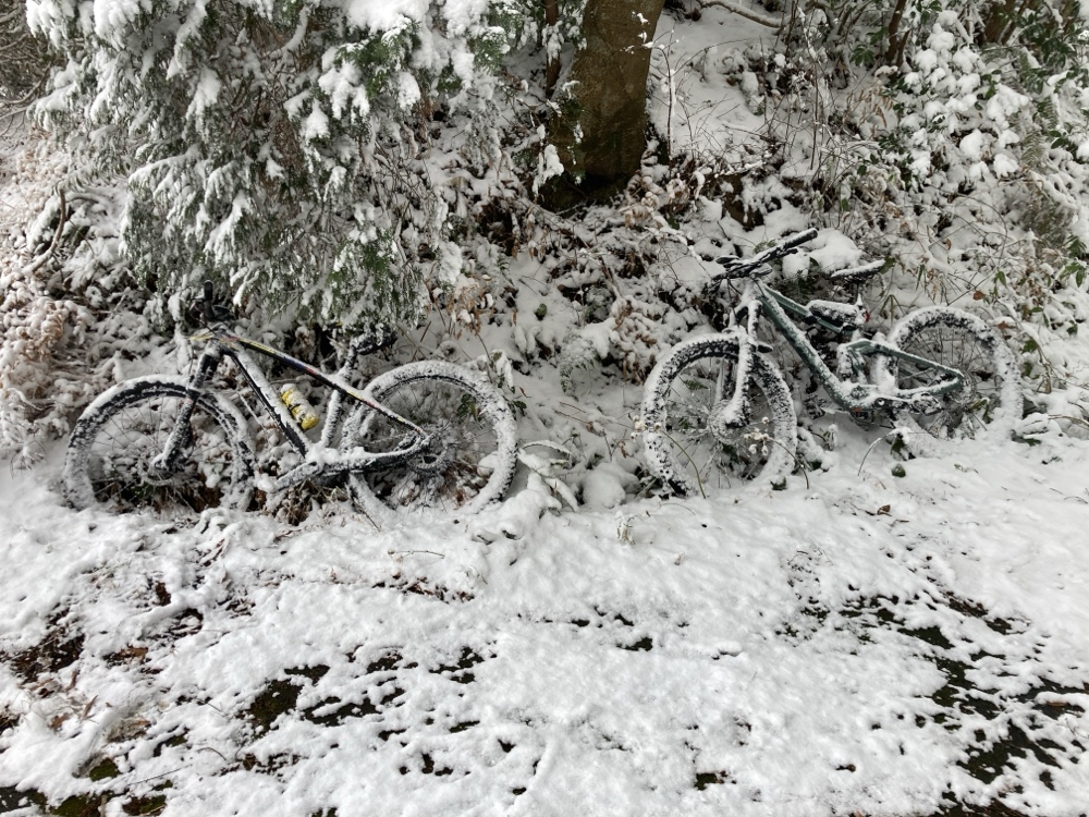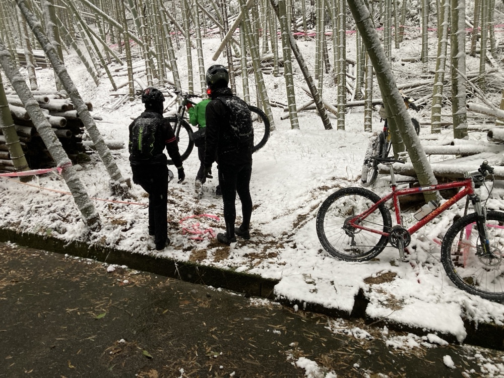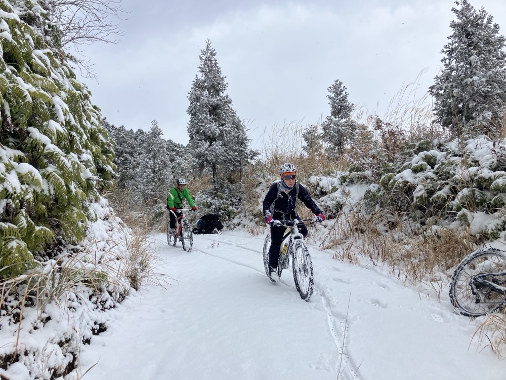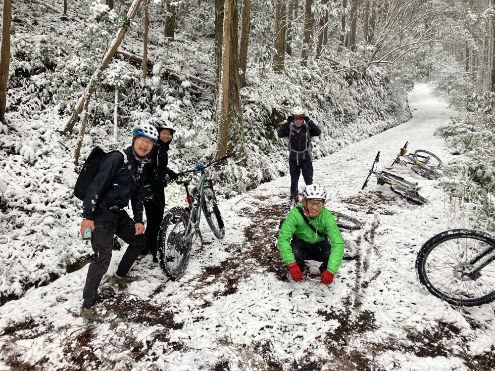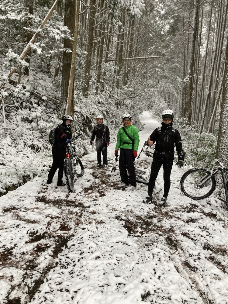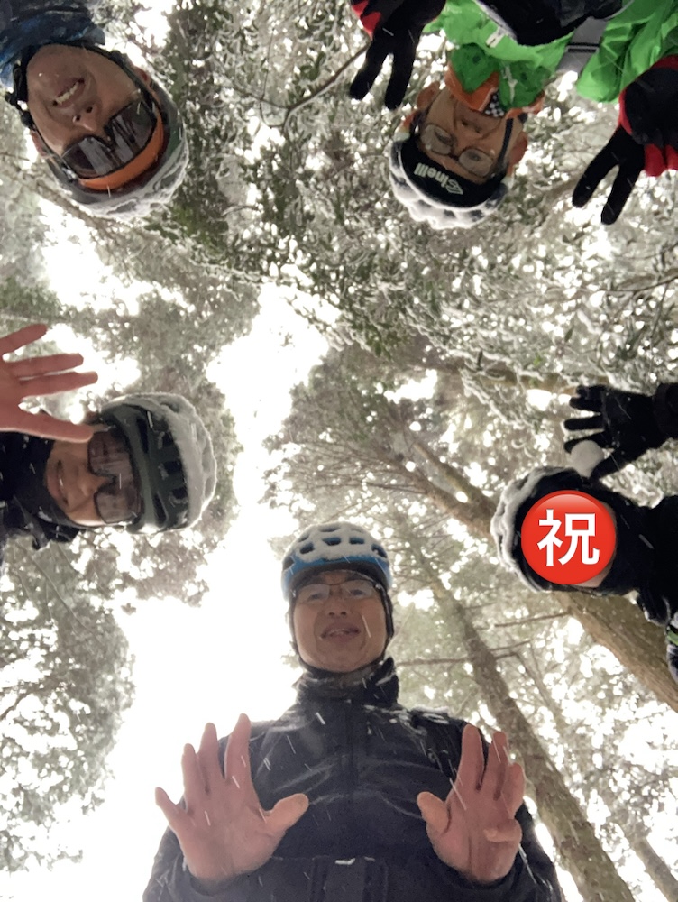 極寒の、雪降る日曜日に、山に上ってサイクリング会してきました。