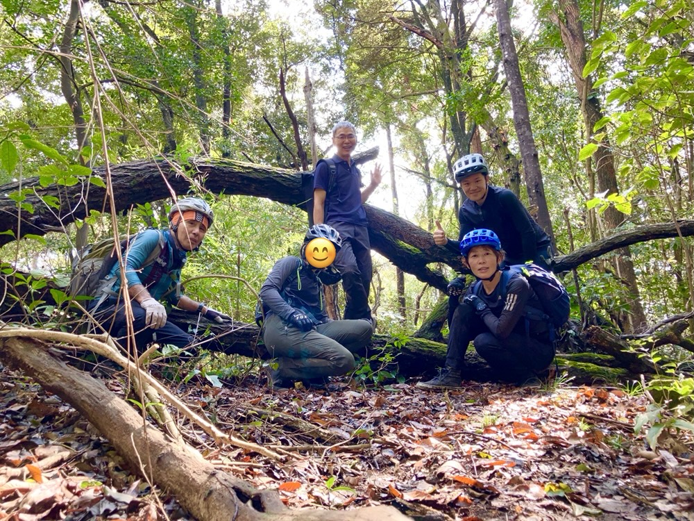 山頂では持ち寄ったお菓子や手作りケーキなどいただいて昼食とし、お腹いっぱい満足感いっぱいの山道マウンテンバイクライドとなりました。ありがとうございました。