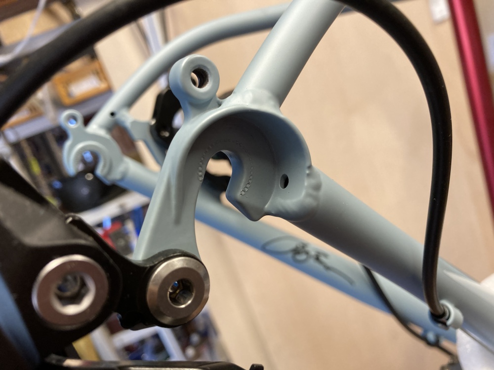 チェーンステー内側の目立たない所にサインがありました。ブランドオーナー名でしょう。