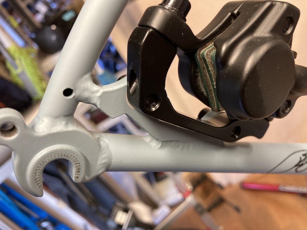 ベーシックモデルなのでスルーアクスルではなくノーマルエンドですが、強度のありそうな独特のエンド形状、独自のブレーキステーに特徴があります。